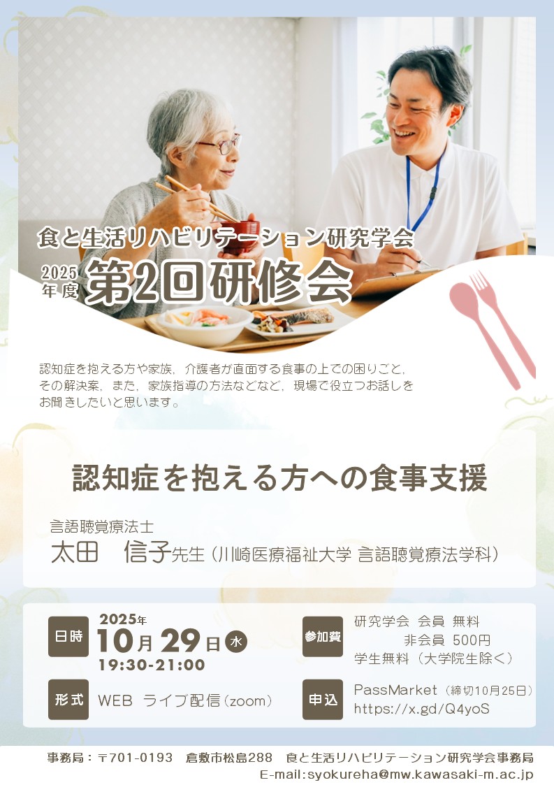 参加費:食と生活リハビリテーション研究学会 会員:無料 非会員:500円